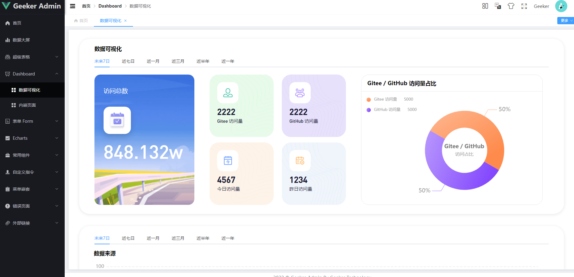 今天在翻看开源项目,发现一款超好看的开源后台框架 – Geeker-Admin,用来学习和副业都是很香的。