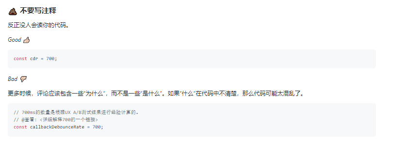 作者还给每一条准则提供了一个很合理的理由,为啥这么干~~