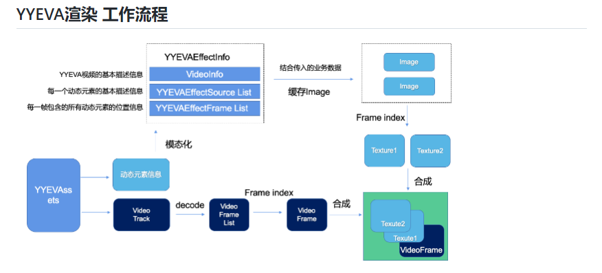 根据视频信息,结合业务数据,将使用的图片进行缓存,最后根据帧缩引与视频对应帧渲染成最终的画面。