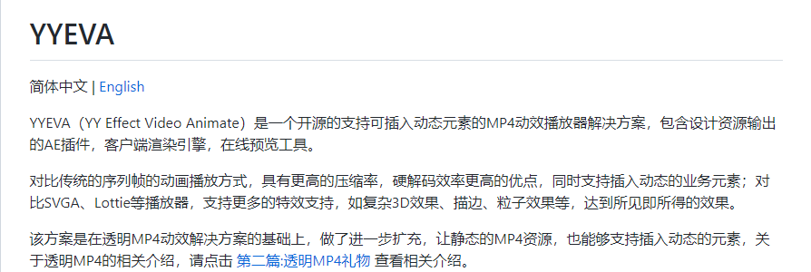 YYEVA(YY Effect Video Animate)是YY直播团队开源的移动端适配动画解决方案,该方案包含了客户端渲染引擎,设计配套工具等,可以说是很全面,很完善的一套方案。
